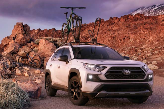 USトヨタでのみ展開される人気グレード、TRD Off-RoadはRAV4にもラインナップ。TRDチューンのサスペンションと専用18インチが与えられ、シートやフロアマットを含めインテリアの各所にはTRDロゴが刻まれる。