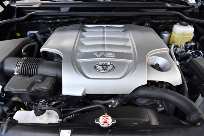 トヨタ独自のKDSS(キネティック・ダイナミック・サスペンション・システム)はハードなコーナリングや悪路で姿勢維持に貢献。381馬力のV8エンジンと8速ATはフィールドを選ぶことなく、大柄なボディをグイグイと前へ押し出す。