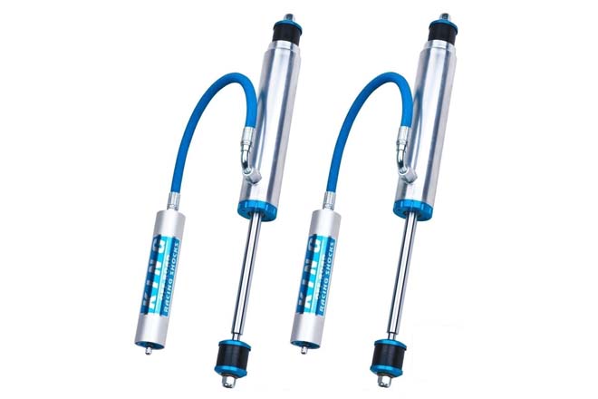 1996年に創業し、ちょうどその頃に根付き始めたプレランナーシーンを熱烈にサポート。高速でダートを走る際のレスポンス向上に加え、どんなクルマでもロングトラベルサスペンションを着実にストロークさせるという評判はたちまち全米中に飛び火し、一躍有名メーカーの仲間入りを果たしたKINGショック。最近ではハードコア・オフロードパーツというイメージの一方でブランドカラーであるブルー以外の製品バリエーションを展開、さらに自動車メーカーのOEMショックを供給するなどその活動は多岐に渡っている。