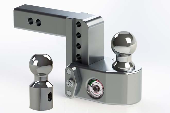 垂直荷重の状態がゲージで確認できるという画期的なトーイングヒッチを販売するWeighn Safeはオフロードシーン以外からも呼び声が高いメーカー。各種揃った製品群は精度の高いCNC加工で削り出されたアルミニウム素材となり信頼性も高い。