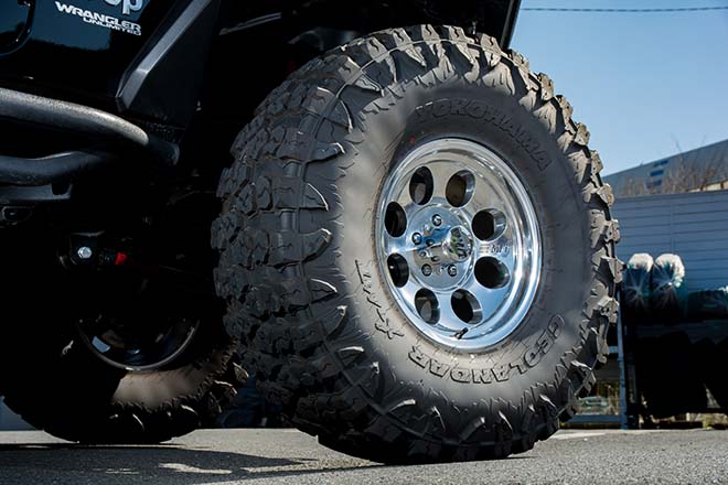 40インチのタイヤ径と4.5インチのリフトアップが迫力を演出。武骨かつ大胆なスタイル。