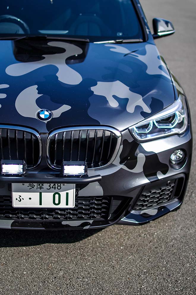 ユーロ系、しかもBMWをカモフラージュに仕立てようとは、なんとも大胆不敵な遊びゴコロ。アドベンチャーツアラー感の演出はTHULEのルーフトップで。