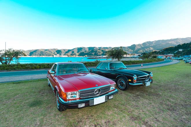 「オトウチャン」と呼ばれれば、中年以上のヨレヨレの「オジチャン」が返事するのが当たり前。その返事に振り返ったのは、長身で細身のハンサムな青年だった。程よく日焼けしたその笑顔は、日本人離れした堀の深いイケメン。ひと言でいい男。77年式のW107 450SLCのオーナーだ。