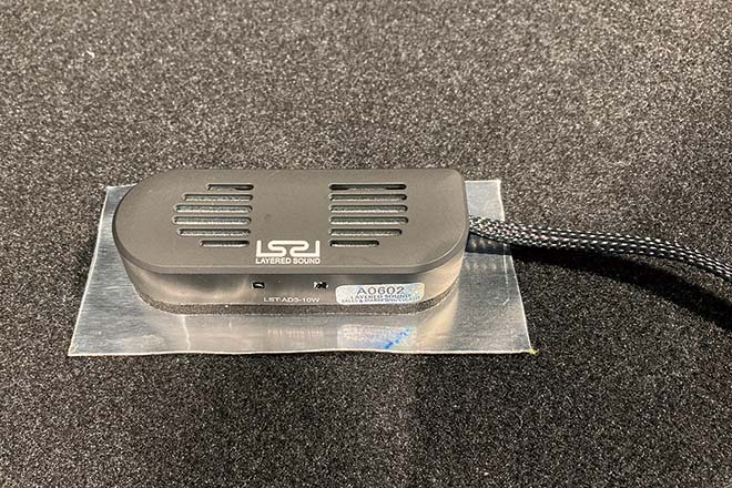 レイヤードとは「重ねる」と言う意味で、文字通り既存のオーディオシステムに重ねることで、全く別次元の音響空間を演出できるというもの。最大の特徴はアンプ、スピーカーユニット共に非常にコンパクトな点で、Aピラーやルーフ部分に埋め込むことが可能。またアンプはモバイルバッテリー程度の大きさにも関わらず、20W×4チャンネルを出力可能なので、十二分なポテンシャルを備えている。