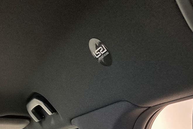 楽器の中で共鳴するD波を生み出す、レイヤードサウンドのスピーカーユニット。既存のオーディオとは全く考え方が異なる事と、非常に小さく軽量なので、取り付け場所を選ばない。そのため、今までは難しかったピラーの上方やルーフ内に装着が可能。耳よりも高い位置とする事で、音が減衰することなく、コンサートホールのように豊かに体を包み込む。