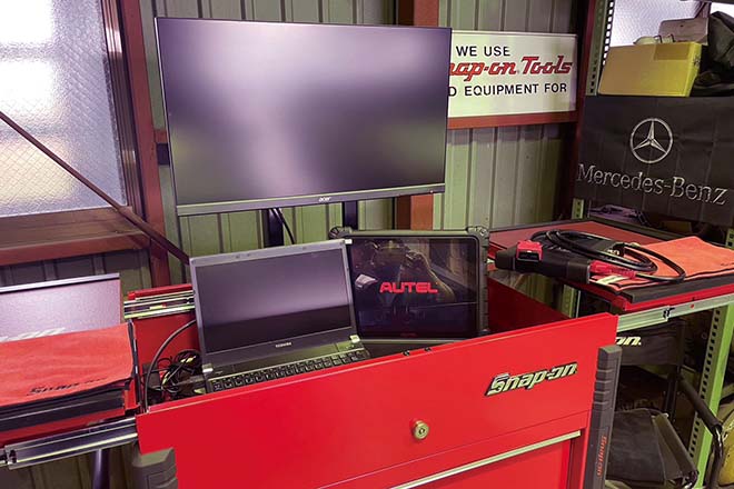 高年式モデルでは必須となる各種コンピュータ診断機を揃えているので、パーツ交換後のコーディングやリセットといった作業にも対応できる体制が整っている。