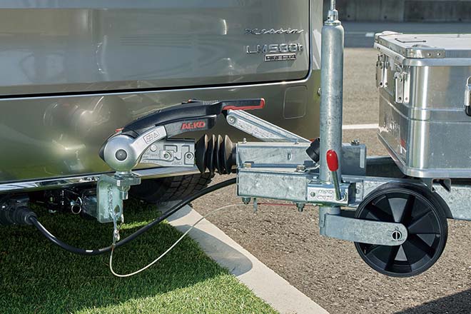 トレーラーにとって重要な接続部分。X-cabinはドイツのアルコ社製を採用し、専用設計となっている。トレーラーの事故で多いスネーキング現象を抑えることができるスタビライザー付きで、高い安全性能を持っている。