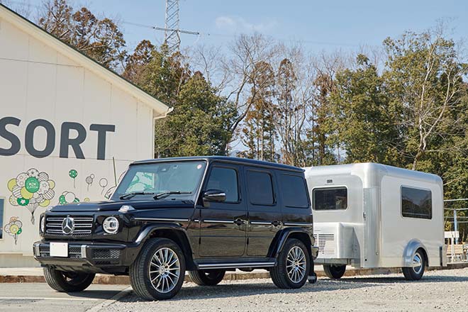 ワンランク上のアウトドアを楽しめるのがキャンピングトレーラー。X-cabinは適度なサイズ感と充実した装備を備えているのが魅力。しかも、けん引免許は必要無し! Gクラスで極上の時間を過ごせる。