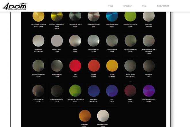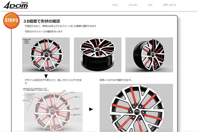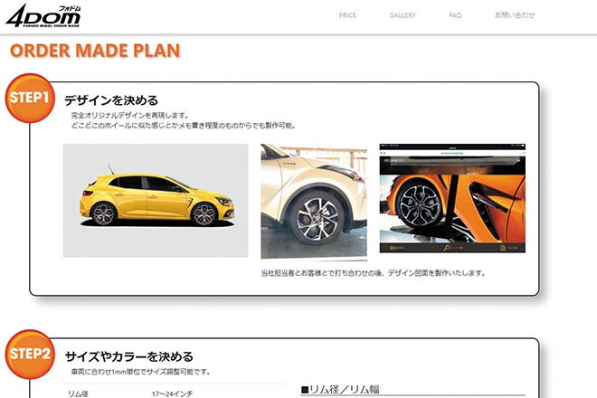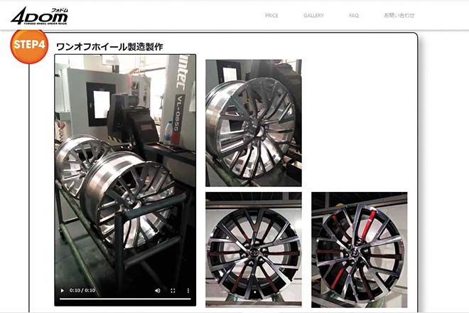ホイールをオーダーするにあたり、どの様に話を進めていくのか、どこまで要望できるのかなどが気になるところ。同社ホームページから4DOM専用ページに進むと製作工程が事細かに掲載されておりイメージが湧くはずだ。